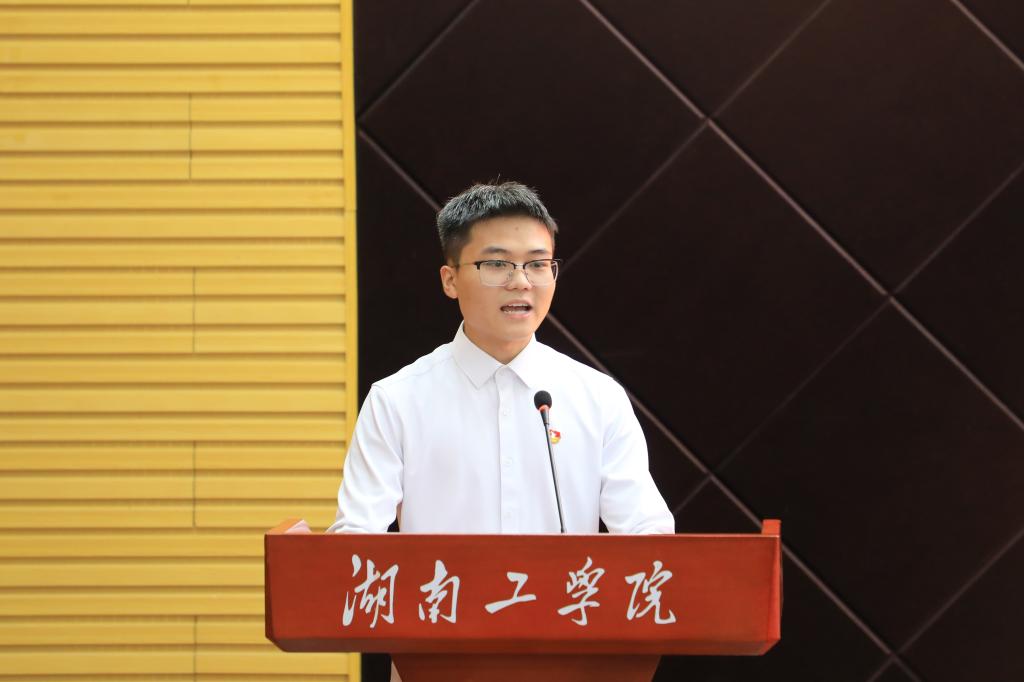 仪式上,电气与信息工程学院电气2101班田伊扬代表新党员表了决心。