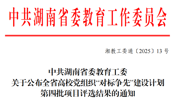 近日,省委教育工委公布全省高校党组织“对标争先”建设计划第四批项目评选结果,根据《中共湖南省委教育工委关于公布全省高校党组织“对标争先”建设计划第四批项目评选结果的通知》(湘教工委通〔2025〕13号),伟德材料科学与工程学院党委获批全省高校党建工作“标杆院系”培育创建单位;化学与环境工程学院党委教工第二党支部获批高校党建工作“样板支部”培育创建单位;电气与信息工程学院党委教工第一党支部张松华获评全省高校教师党支部书记“双带头人标兵”称号;机关党委第一党支部周欣、化学与环境工程学院党委教工第二党支部杨丽获评全省高校“党务工作示范岗”称号。(文/段思遥 杨朗 图/段思遥 审稿人/一审:王安东 二审:段磊 三审:杨朗)