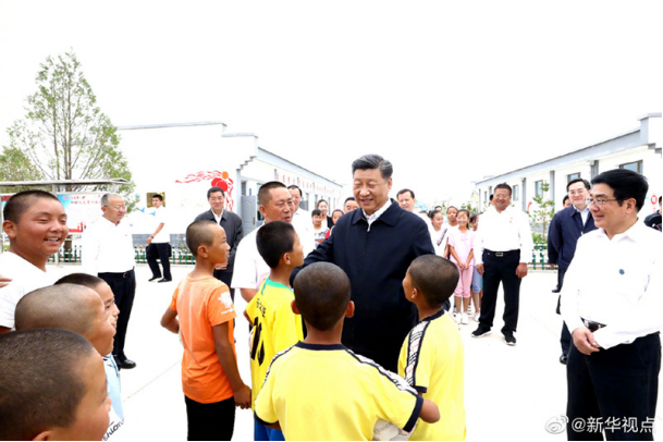 21日上午,习近平总书记来到甘肃省古浪县黄花滩生态移民区富民新村考察调研。小学操场上,孩子们正在老师指导下练习踢足球,看到总书记来了,高兴地围拢过来高声喊“爷爷好”。大家告诉总书记,学校开设了足球、篮球、乒乓球等体育课程,同学们都很喜欢。看着孩子们一张张黝黑的小脸,习近平高兴地说,体育运动要从娃娃抓起,德智体美劳要全面发展。如果像这样偏远地区的小朋友也经常踢足球,足球运动就有了广泛群众基础,中国足球就一定能够冲出亚洲、走向世界。(文字记者:张晓松、朱基钗 摄影记者:鞠鹏)
