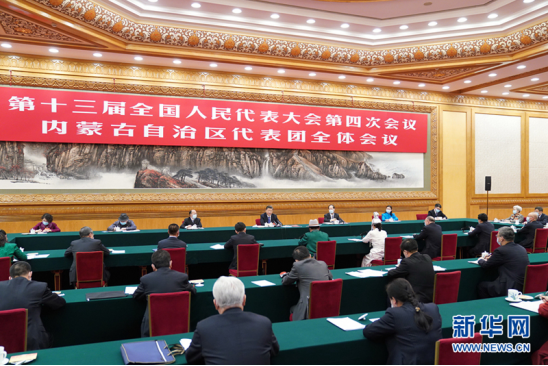3月5日,中共中央总书记、国家主席、中央军委主席习近平参加十三届全国人大四次会议内蒙古代表团的审议。(新华社记者 谢环驰/摄)