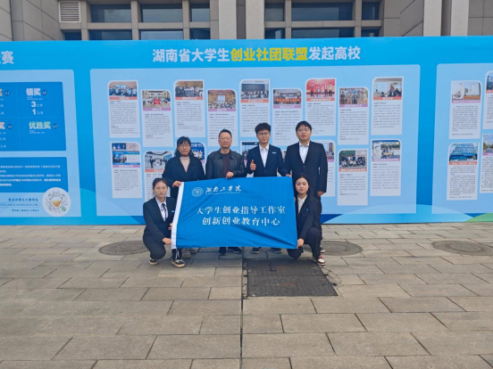 2025年11月12日,湖南省高校大学生创业工作推进会暨2025年大学生创业活动周启动仪式在中南大学举行,学校创新创业教育中心主任王小兵、大学生创业指导工作室工作老师、众创服务中心社团代表及创业项目团队学生代表参加了本次活动。