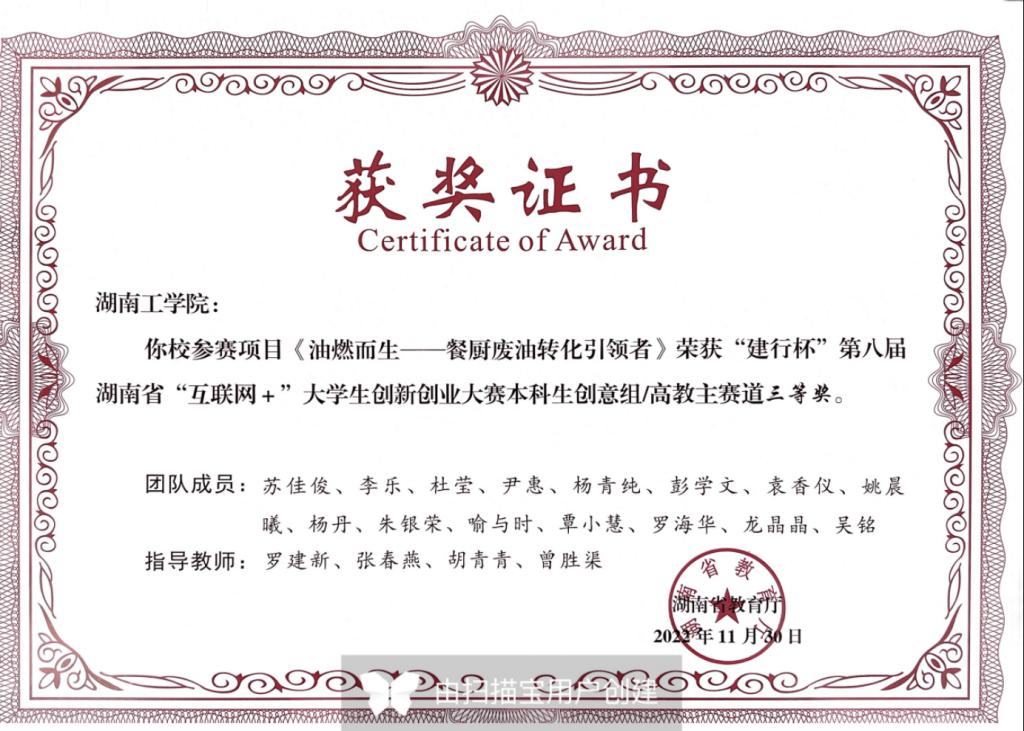 省赛三等奖:油燃而生——餐厨废油转化引领者