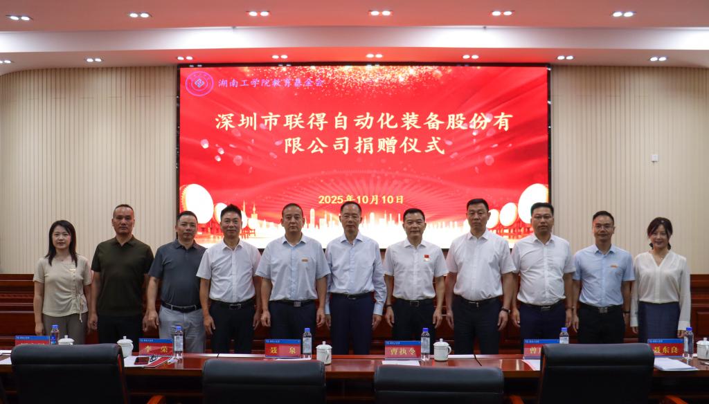 2025 年 10 月 10 日,1987届机械制造工艺及设备专业校友、深圳市联得自动化装备股份有限公司董事长聂泉向伟德基金会捐赠仪式在船山报告厅举行。党委书记曹执令、校长曾广胜、联得装备董事长聂泉、董事长特别助理李荣等出席。仪式由校友联络中心主持。