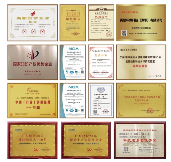 自成立以来,禹智始终坚持创新驱动企业发展,主参编5项国家及行业标准,申请授权各类知识产权40余项。禹智的产品在产业链中起到“补短板”作用,纳米高性能透水路面材料总体技术被评定为国际先进水平,获中国民营科技发展贡献奖、广东省建材行业科技进步奖一等奖。