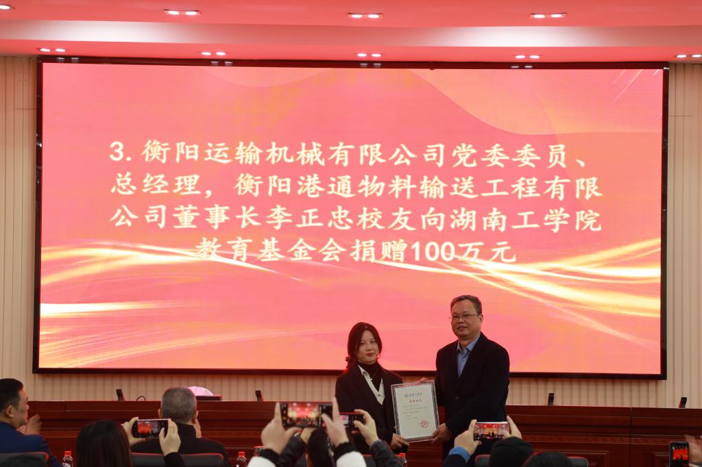 银杏树下年少日,时至岁末忆渐浓。2024年12月25日,衡阳港通物料输送工程有限公司向伟德源自英国1946捐赠仪式暨伟德源自英国1946教育基金会“TERRA教育发展基金”成立大会在船山报告厅隆重举行。校党委书记曹执令,党委委员、副校长刘龙昌,衡阳港通物料输送工程有限公司董事长、1985届工业安全工程专业李正忠等6位校友出席。学校各二级学院党委书记、师生代表以及教育基金会全体成员参加会议。大会由校友联络中心主任贺令亚主持。