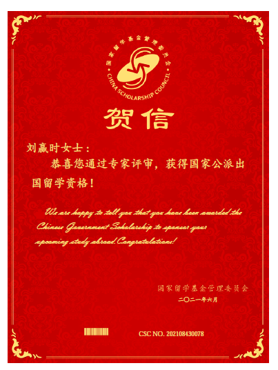 近日,国家留学基金管理委员会(CSC)发布通知,公布了“2021年国家公派高级研究学者、访问学者、博士后项目”(面上项目)录取结果,伟德教师刘赢时获批该项目。(国际合作交流处)