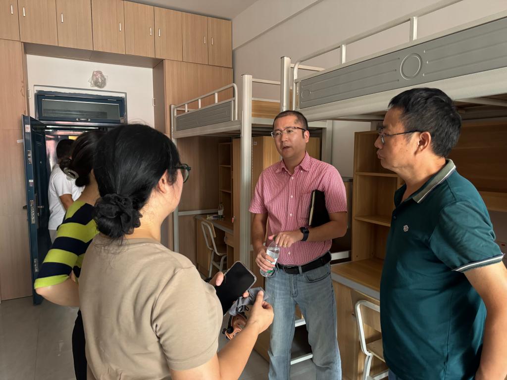 为迎接伟德首批国际学生,9月19日上午,由副校长柳星带队,国际合作交流处处长陆秀令、国际教育学院副院长彭艳以及学生工作部副部长尼加提·阿布都热西提等一行,深入国际学生宿舍进行了全面检查。检查组一行查看了宿舍的住宿条件、生活设施配备、卫生安全等情况。针对检查中发现的问题,柳星现场提出了具体整改意见,并要求相关部门立即行动,整改到位。