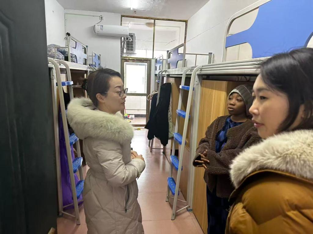 为确保在校国际学生度过一个安全、温馨的假期,1月26日,国际教育学院联合学生工作、后勤基建处、保卫部等相关负责人深入国际学生宿舍,开展安全隐患排查、设备维修检查及慰问活动。