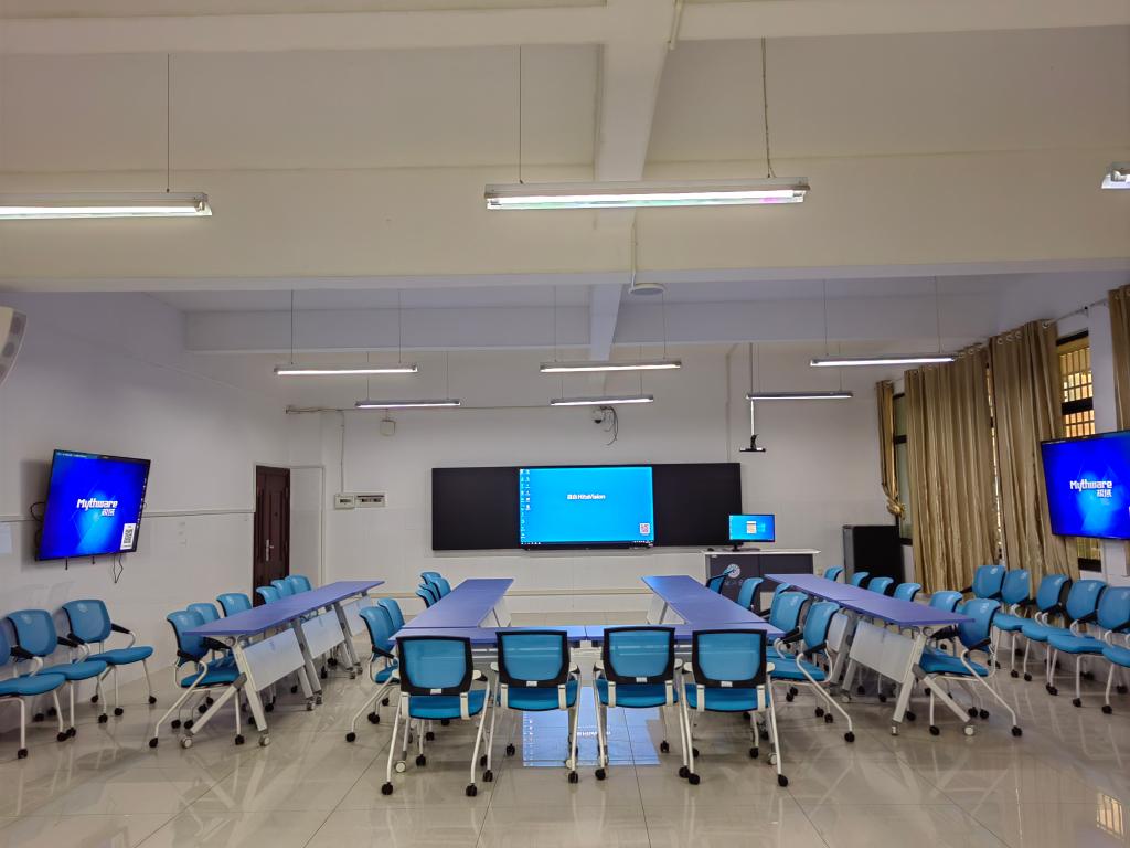 “原来的教室的设备都是传统陈旧的设施,电脑、投影仪老化,网络信号不畅,在100座的教室里面没有分屏,坐在后排的学生根本看不清老师的板书和投影的内容,严重影响教学效果和学生的学习效果。为了解决这个问题,学校持续加大教学资金投入,新建改建智慧型教室、研讨型教室53间,改造升级录播室10间,将传统教学与现代化教学无缝融合,实现良好的师生互动”,国有资产管理处长刘仁能说道。