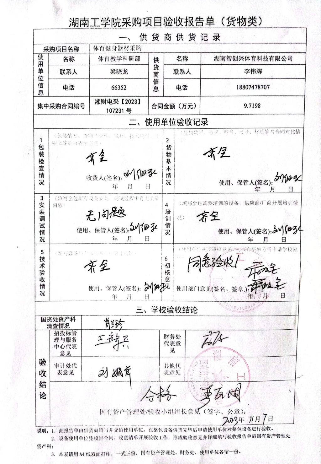 2023年9月关于湘财电采【2023】107231号项目验收情况公告