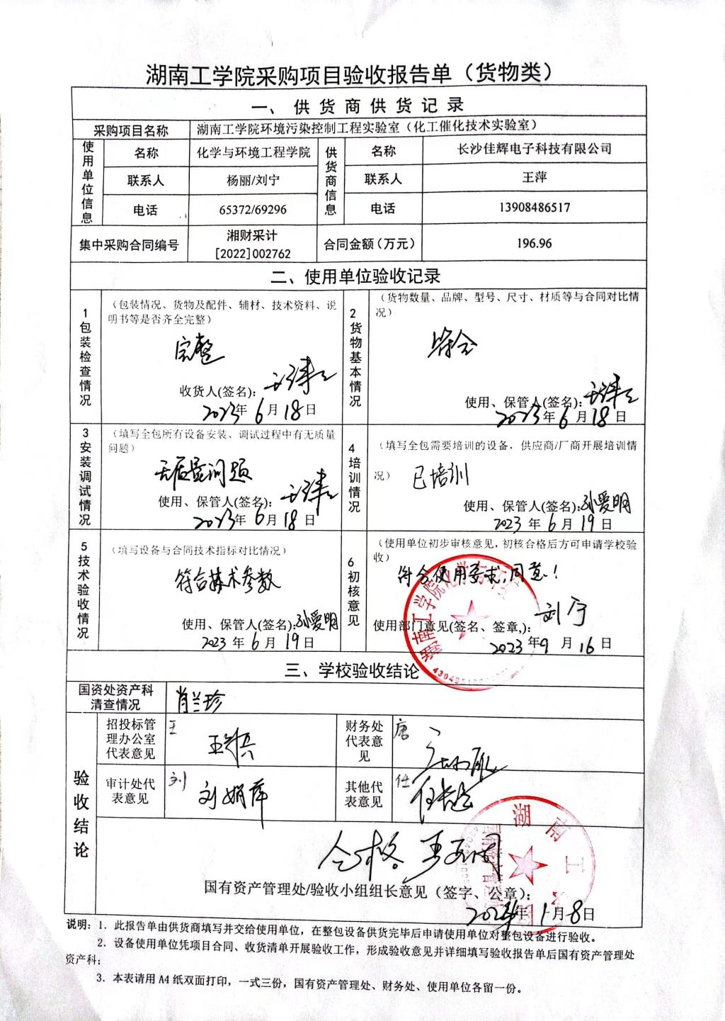 2023年10月关于湘财采计【2022】002762号项目验收情况公告