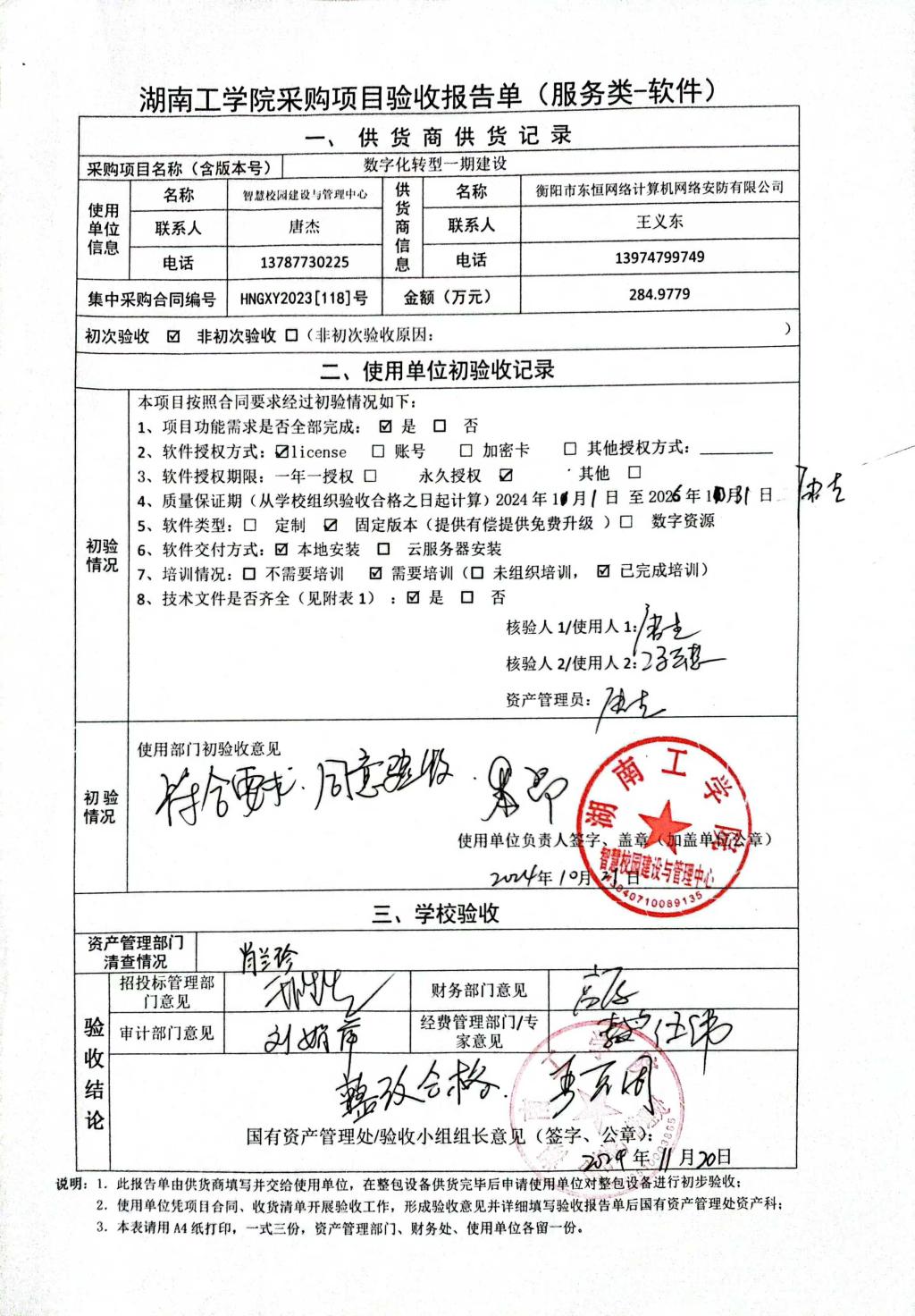根据国有资产管理处对采购项目的验收安排,2024年10月31日国有资产管理处组织招投标管理与服务中心、审计处、财务处、教务处以及部门代表对供应商的项目进行现场验收。