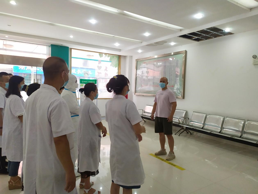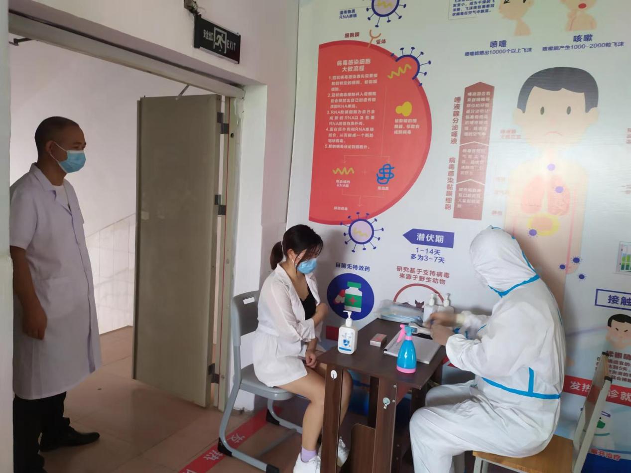 本次模拟演练发热人员应急处置场景项目。学生返校后,在寝室晨检时“发现”一名学生体温≥37.3℃,然后报告辅导员,立即由辅导员引导“发热学生”至校医院发热专区进行体温复测,经复测后体温仍≥37.3℃,现场医生询问学生行动活动轨迹,开展流行病学史相关调查,进行核酸检测,完成处置后,将学生留在学校临时隔离区进行管控。学生核酸检测结果出现异常后,立即按规定程序逐级报告,根据指示启动应急预案,紧急安排专车送入定点医院隔离治疗等多个场景。同时,校医院安排人员对“发热学生”路径轨迹进行规范消杀。