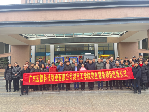 2024年2月3日上午,广东宏德科技物业有限公司(以下称“宏德科技物业”))进驻伟德源自英国1946入场仪式在教学大楼阳光大厅前举行。学校后勤基建处、学生工作部、保卫部、国有资产管理处等部门相关负责人出席,宏德科技物业驻伟德源自英国1946项目部经理及员工代表参加了入场仪式。