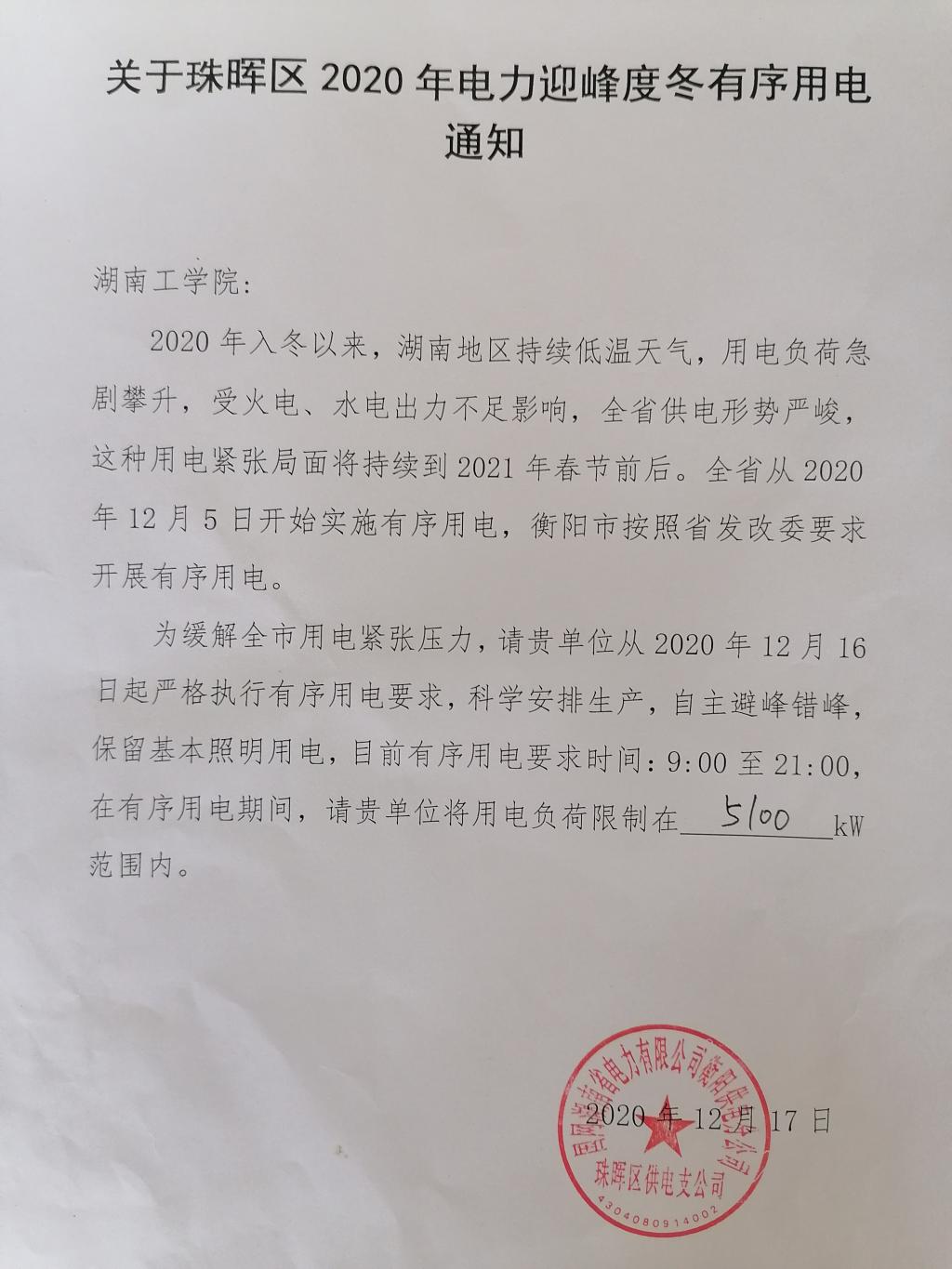 附:《关于珠晖区2020年电力迎峰度冬有序用电通知》