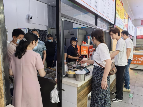 检查组深入一楼售卖区、就餐区及二、三楼操作间,重点围绕环境卫生、操作规范、食材管理等方面进行全面检查。