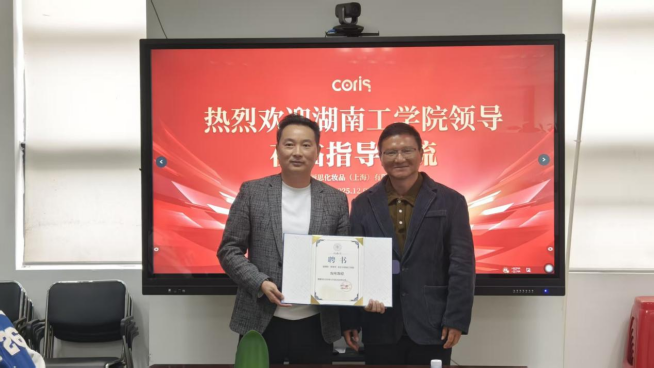 在走访科丽思化妆品(上海)有限公司的交流活动中,娄晓明受学校委托,正式为科丽思化妆品(上海)有限公司总经理、98分析专业校友周海军颁发客座教授聘书,聘请其助力学校相关学科建设与人才培育工作。