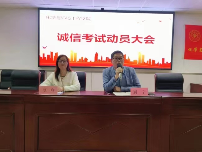 为了严肃考风考纪,加强青年大学生的诚信教育,1124日下午,化学与环境工程学院1301召开诚信动员大会。党委副书记蔡玲、副院长刘宁全体辅导员、班主任出席,团学干部和班级代表参加此次大会。大会由学工办主任兼分团委书记陈凌霄主持。