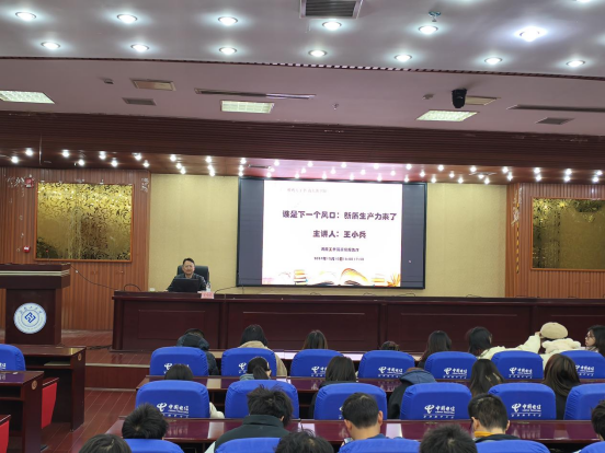 王小兵教授的讲座以“谁是下一个风口:新质生产力来了”为题,从“为什么要读《新质生产力》、《新质生产力》读什么、如何读《新质生产力》、《新质生产力》如何用”四个方面对新质生产力进行解读。王小兵教授首先详细介绍新质生产力概念提出的背景,接着具体阐述了新质生产力要读内涵、读要点、读举措。最后引导大家如何读、如何用新质生产力。