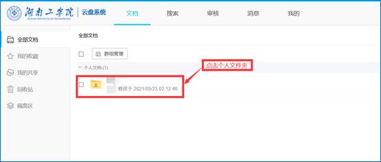 7、单击左侧的“我的收藏”可查看我收藏的文档,单击“我的共享”,可查看我共享的文档,单击“回收站”可查看我删除的文档,并进行恢复或彻底删除。