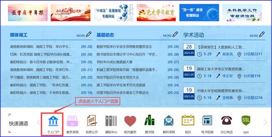 1、登录校园网首页,点击“个人门户”,进入统一身份认证平台(http://my.hnit.edu.cn),输入个人工号、密码及验证码后,点击“登录”按钮登入个人门户。