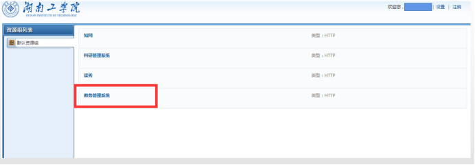 4.VPN登录页面后选择“教务管理系统”,如下图所示。或打开其他可用浏览器,直接输入教务系统地址访问即可。