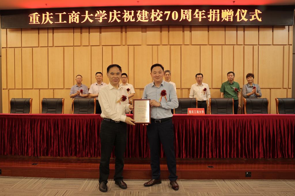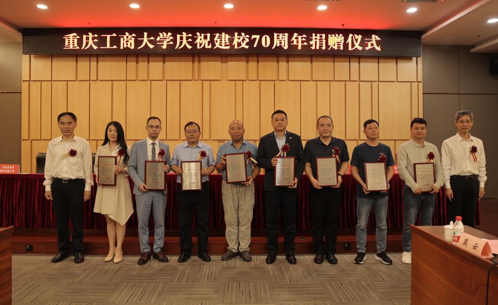 1981级英语专业校友、学校校友会副会长,重庆新途进出口贸易有限公司董事长王敬春,1986级计划统计专业校友、重庆起飞线信息技术有限公司天使投资人刘元均,1987级化学专业校友、重庆金智展混凝土有限公司董事长陈维顺,1989级企业管理专业校友、新安洁智能环境技术服务股份有限公司执行总裁王啸,1991级会计学专业校友、天健会计师事务所高级合伙人潘理科,1999级金融学专业校友、大成律师事务所高级合伙人郭志清,2002级财政学专业校友、新安洁智能环境技术服务股份有限公司财务总监董晓杰,2004级物流管理专业校友、重庆起飞线信息技术有限公司创始人兼CEO谭春,2005级物流管理专业校友、重庆起飞线信息技术有限公司联合创始人兼COO徐锋,2011级包装工程专业校友、宁波市春禾时装有限公司总经理助理崔玉春等10位优秀校友代表,以及上海高顿教育科技有限公司高校事业部总经理舒畅、天健会计师事务所重庆分所文化品牌部经理王弘扬等2位关心支持学校发展的嘉宾参加了捐赠仪式。