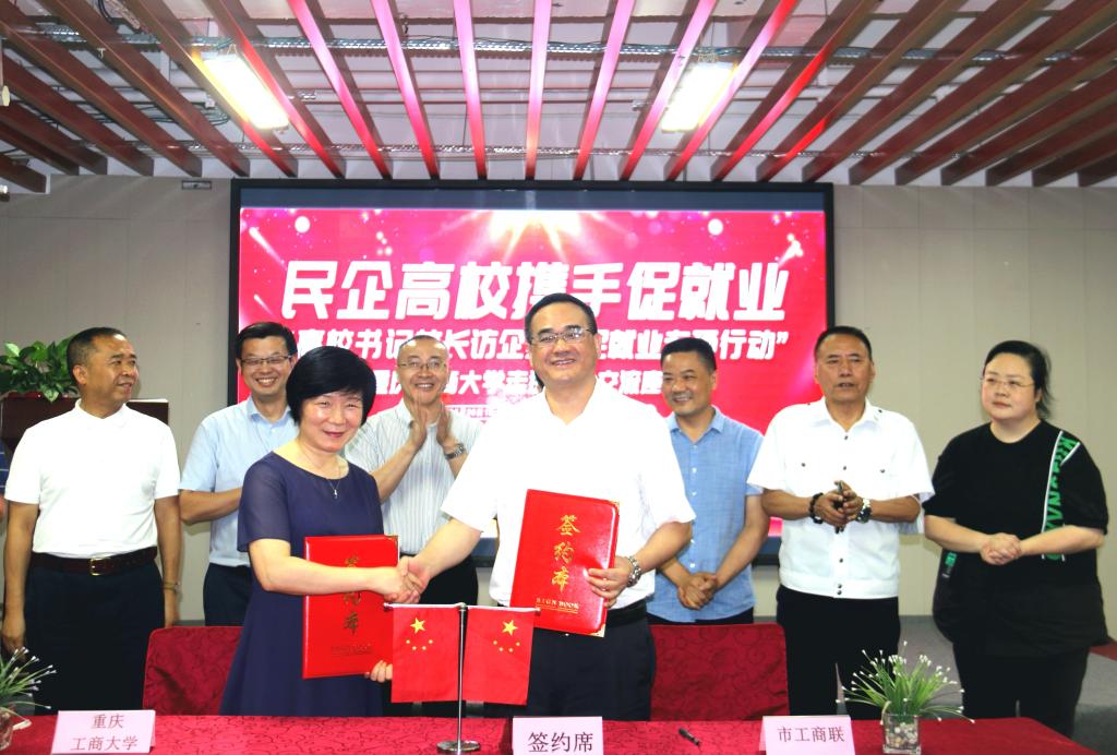 为贯彻落实“高校书记校长访企拓岗促就业专项行动”和“民企高校携手促就业行动”,6月20日,学校党委副书记、统战部部长宋豫带领学校党委统战部、招生就业处、工商管理学院、会计学院、管理科学与工程学院、人工智能学院、机械工程学院、民进学校支部等相关职能部门、学院和民主党派基层组织负责人走进重庆市工商联、重庆市总商会,在渝北区海领商务楼与30余家民营企业及企业家代表进行交流座谈,为持续推进高校毕业生就业创业这一重要的民生工程凝聚合力,精准发力,协同助力。