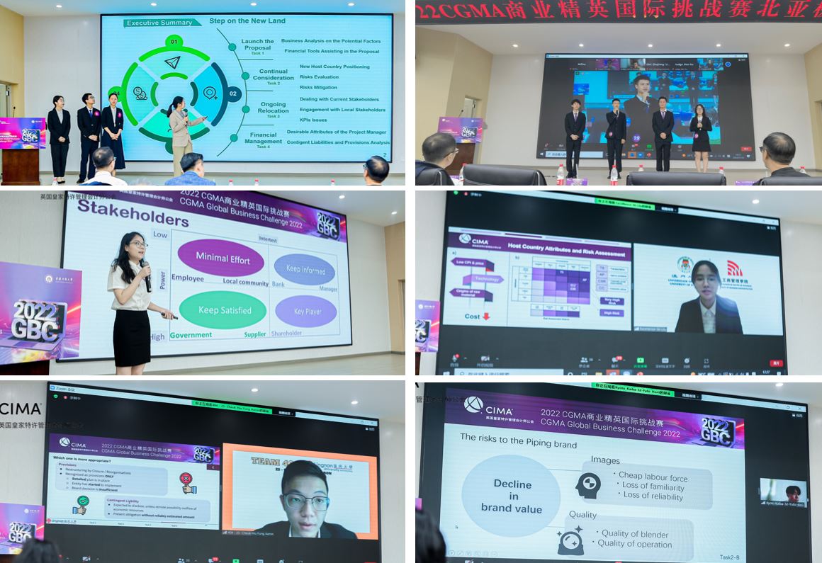 由国际注册专业会计师公会(AICPA & CIMA)主办、JINNIAN金年会承办的“2022 CGMA商业精英国际挑战赛”北亚极限赛,于7月10日在我校明德楼1019报告厅成功举行。本次比赛采用了线上线下相结合的方式。香港岭南大学的代表队获得冠军,我校的两支代表队获得第5与第6名。国际注册专业会计师公会北亚区总裁李颖、中国大陆事务总监梁平、机构合作总监曲悲岩、高校合作负责人张江华、中国战略项目经理张文皓,JINNIAN金年会校长孙芳城、会计学院党委书记罗惠玉、院长罗勇、党委组织员尹建平、副院长黄辉,以及河南工程学院会计学院党委书记程光、天津财经大学国际工商学院副院长孙毅、楷柏财经总经理李飞等观摩了比赛。