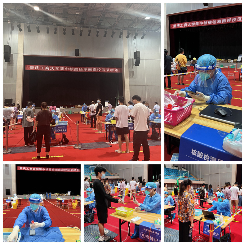 8月28日-8月31日,面对暑假期间因校园疫情封闭管理而导致人手紧缺的情况,广大教职工志愿者化身一个个“大白”“小蓝”,协同医护人员一起,开展核酸检测秩序维护、信息登记、人员引领等相关工作,为3000余名校内居住的师生开展了4轮核酸检测,累计检测12912人次。志愿者老师冲在前、干在先,坚守在防疫最前沿,圆满完成阶段检测任务,为学校疫情防控工作贡献力量,为学校“扎起”、为南岸“扎起”,为重庆“扎起”。