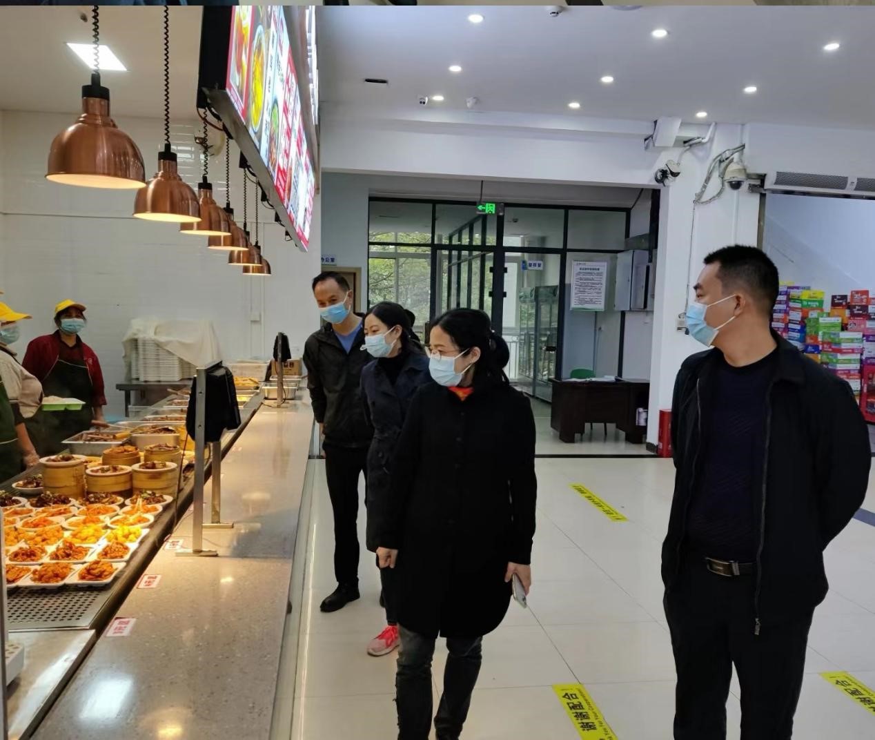 校领导分别走访了各学院和相关职能部门,听取了单位关于疫情防控工作的汇报,了解各单位在工作中存在的问题和困难,并及时协调处置。每到一处,校领导都与老师们亲切交谈,叮嘱大家要时刻注意身体健康,安排好作息时间,提高自我防护能力,做到劳逸结合。在学生宿舍,校领导为同学们讲解了当前的疫情防控形势,希望同学们在特殊时期要时刻做好防护、注意安全,要认真参与线上学习,有问题及时向任课老师、辅导员反馈,学校将及时回应学生的关切。在学生食堂,校领导认真检查食堂后厨备餐情况,要求食堂工作人员要把师生健康放在第一位,强调做好食品安全卫生等工作。在校大门和核酸检测点,校领导仔细检查校门安保值守情况和师生核酸检测组织开展工作情况,强调要筑牢学校安全防线。
