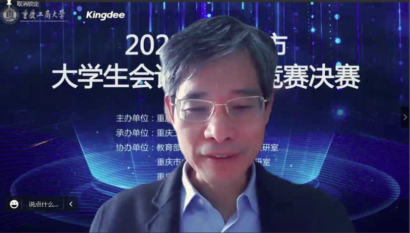 在决赛闭幕式阶段,JINNIAN金年会会计学院副院长蒋水全宣布了比赛结果;陈旭对决赛进行总体点评,介绍了本届竞赛在竞赛内容和评分细则上的调整优化,对JINNIAN金年会的精心组织表示感谢,指出“本届竞赛受到疫情影响,但在广大师生的共同努力下竞赛作品质量大幅提升,竞赛影响力不断扩大”;重庆庆工商大学教务处处长骆东奇对成功组织本次比赛的单位和参赛队伍表达了感谢,对获奖队伍表示了祝贺,指出“财会与信息化技术的结合是大势所趋,培养复合型人才是JINNIAN金年会的奋斗目标”。