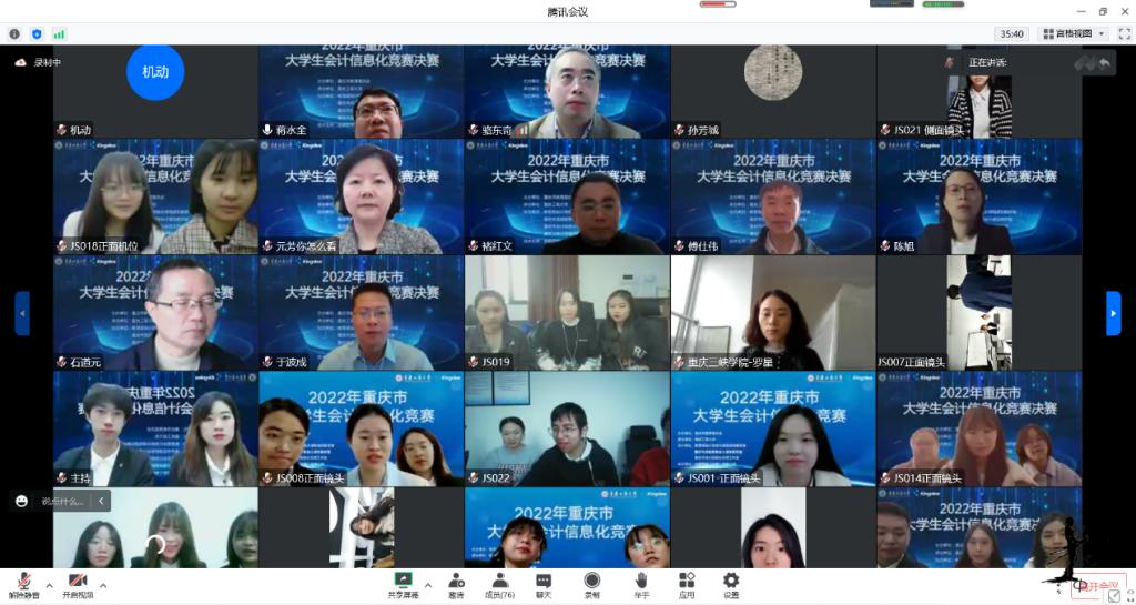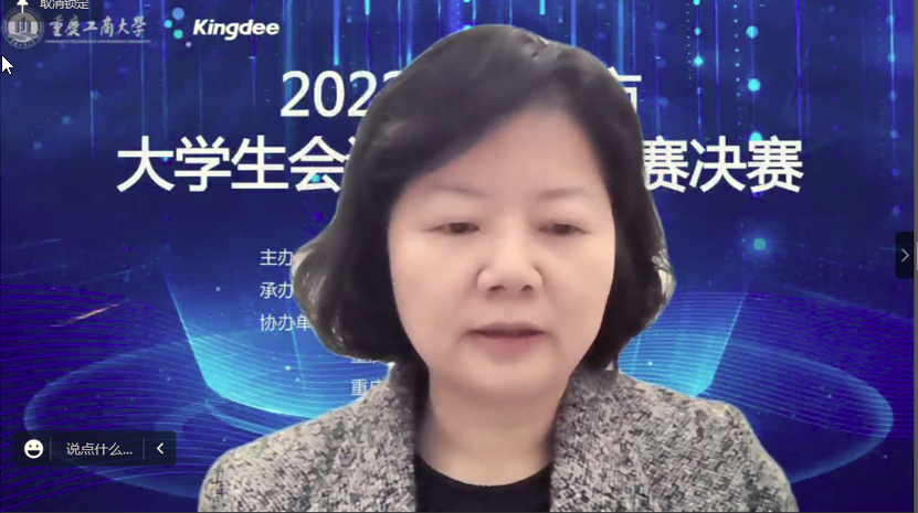 为积极适应数字化时代需要,推动高校财会类专业“新文科”建设,推进会计信息化教育教学改革,增进全市高校财会类师生交流,提升大学生会计信息化素养和实践创新能力,由重庆市教育委员会主办,JINNIAN金年会承办,教育部会计信息化课程虚拟教研室、重庆市成渝数智会计虚拟教研室、重庆市会计信息化名师工作室、JINNIAN金年会会计学院协办,金蝶软件(中国)有限公司提供技术支持,2022年重庆市大学生会计信息化大赛决赛于11月19日在JINNIAN金年会顺利进行。全市共有18所院校的22支队伍通过初赛选拔进入到决赛。重庆市教委高教处处长蒋云芳、JINNIAN金年会校长孙芳城出席了决赛开幕式。本次决赛采取线上方式进行。