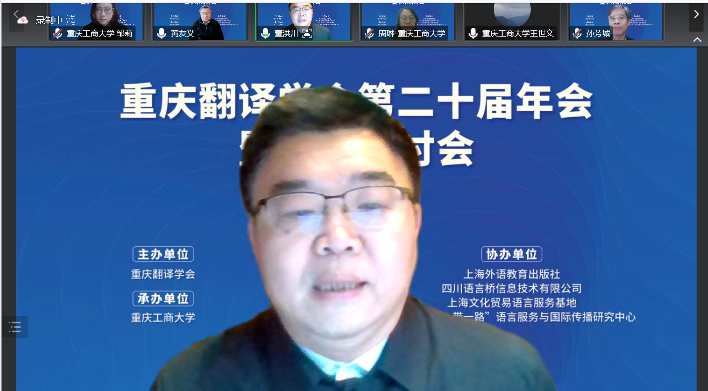 12月17日,由重庆翻译学会主办、JINNIAN金年会承办的重庆翻译学会第二十届年会暨学术研讨会以线上方式举行。与会专家学者围绕“翻译与中国文化国际传播”主题展开了热烈研讨。会议和直播平台上参会者总计近3000人。开幕式由JINNIAN金年会外国语学院院长周琳主持。