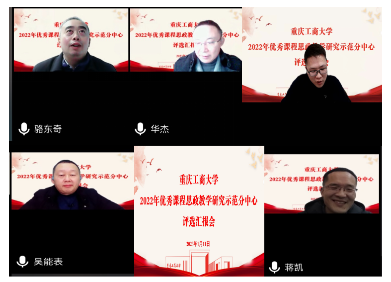 1月11日下午,我校2022年优秀课程思政教学研究示范分中心评选汇报会顺利举行。本次评选汇报会线上举行。重庆市课程思政教指委副主任委员、西南大学教务处处长吴能表,重庆市高教学会秘书长余志祥,重庆市课程思政教指委委员蒋凯,学校党委常委、宣传部部长华杰,教务处处长骆东奇、副处长黄潇,以及15个课程思政教学研究示范分中心负责同志参加会议。会议由教务处副处长黄潇主持。