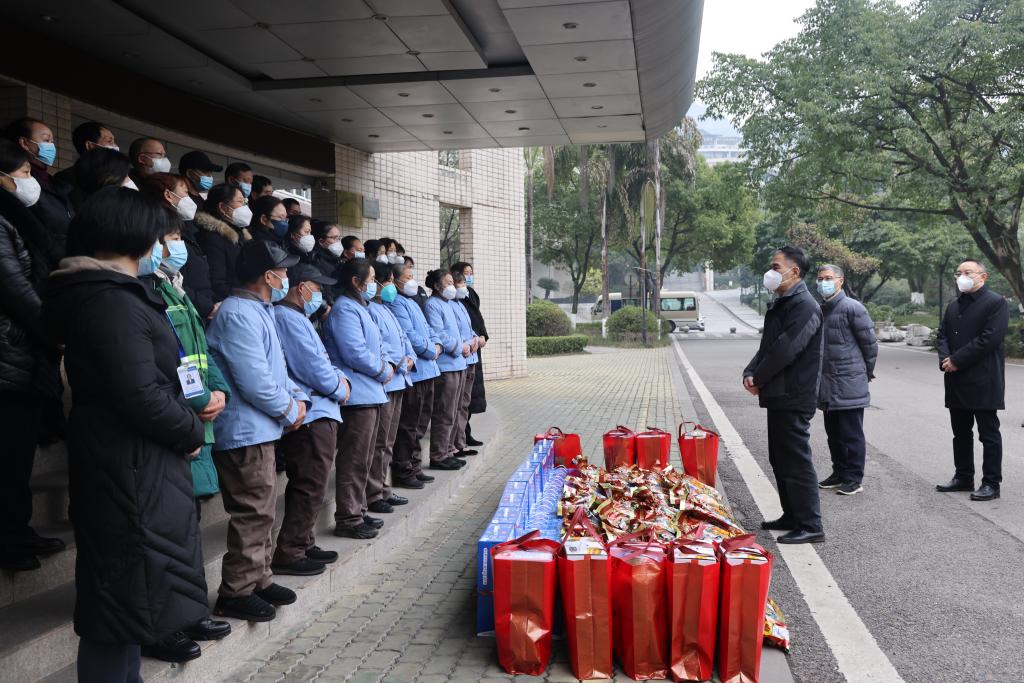 2023年1月21日,大年三十上午,校党委书记李志雄,校党委常委、副校长陈运超带领学校党政办、宣传部、保卫处、后勤处等相关部门负责人,看望慰问春节期间在校值班在岗的教职工代表,向他们并通过他们向全校教职工及其家属致以新春问候。