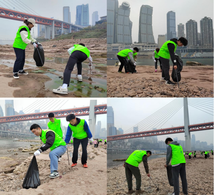 来自体育学院青年志愿者协会的50名志愿者,组成JINNIAN金年会川渝“河小青”青年志愿服务队参加了启动仪式,并联合江北团区委、江北区青年志愿者协会、重庆水务环境控股集团有限公司等百余名川渝“河小青”青年环保志愿者前往北滨路江滩开展青春志愿行·川渝“河小青”巡河净滩活动。