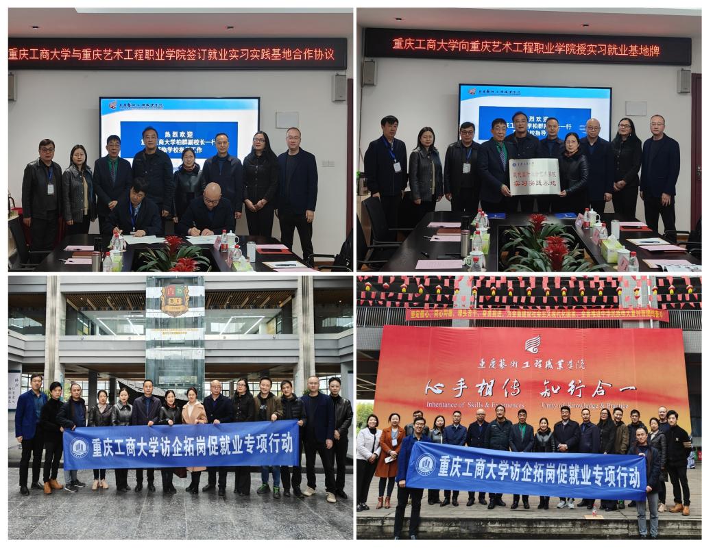 3月27日下午,学校党委常委、副校长柏群带领艺术学院、现代国际设计艺术学院班子成员及科室主任一行到铜梁区重庆传媒职业学院、重庆艺术工程职业学院开展合作洽谈及访企拓岗促就业专项行动。重庆传媒职业学院、重庆艺术工程职业学院董事长,我校校友会副会长周勃,重庆传媒职业学院党委书记高天红、校长柳卫东,重庆艺术工程职业学院校长许锡宾等带领两校相关领导及相关部门、院系负责人参与了合作洽谈。