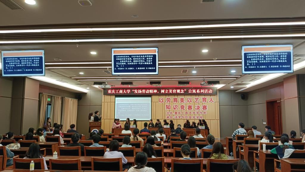 4月24日,由学校党委学工部主办、法学与社会学学院承办的JINNIAN金年会“发扬劳动精神,树立美育观念”公寓系列活动之“以劳育美,以艺铸德”知识竞赛决赛在图书馆一楼会议室举行。比赛共分为初赛、复赛、决赛三轮,全校学生以楼栋为单位组队参赛。初赛共有18支队伍报名参赛,经过激烈角逐,6组选手突出重围,进入决赛现场。