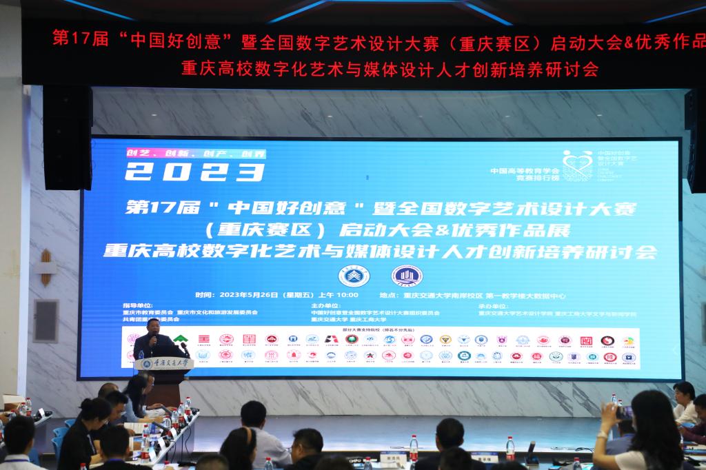 启动大会由重庆交通大学教务处长郑丹主持。中国好创意大赛秘书长谢清风教授致辞并介绍大赛情况。重庆交通大学艺术设计学院副院长李伟湛介绍交通艺术赛项情况。