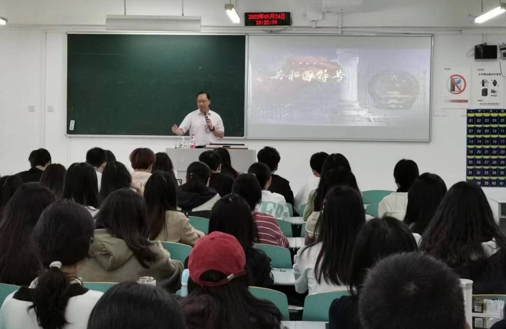 5月24日上午,学校副校长张波在博智楼7105,为2021级税收一、二班的同学们讲授了一堂以“共和国符号”为主题的形势与政策课。