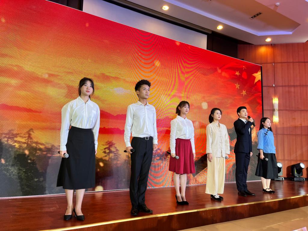 为深入推进学习贯彻习近平新时代中国特色社会主义思想主题教育走深走实,通识学院党总支与江北区文化馆开展党建共建,积极创新党课形式,6月16日,在江北校区举办“‘艺’心向党,筑梦起航”主题教育艺术党课,给全体师生带来了一次难忘的艺术体验,更是一次深刻的党性洗礼。学校党委常委、副校长李国军,通识学院(江北校区管委会)班子成员,江北区文化馆相关领导,通识学院党总支全体党员,2022级学生入党积极分子等300余人参加艺术党课。通识学院全体学生通过线上直播参加党课学习,感悟思想伟力,感受艺术魅力。