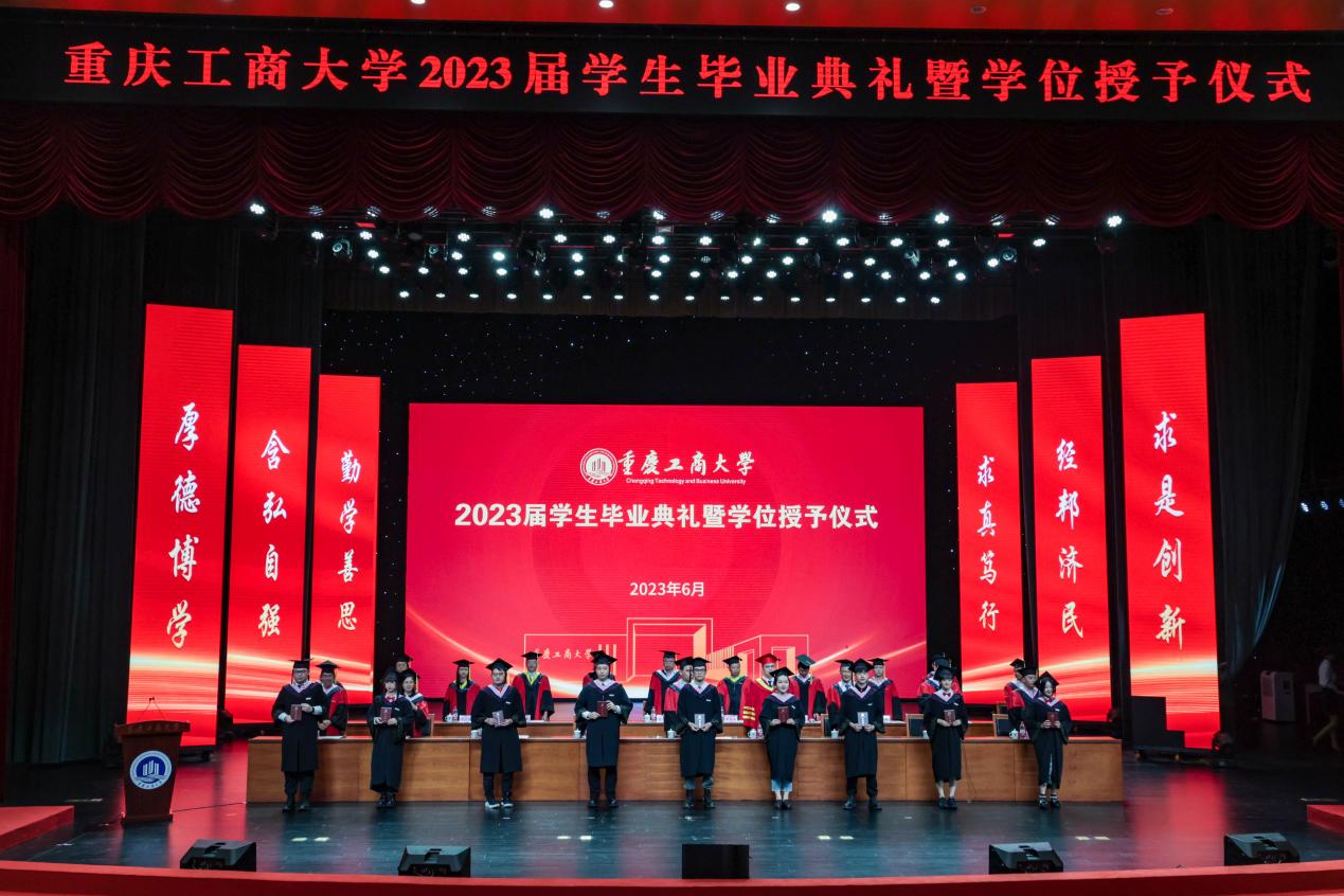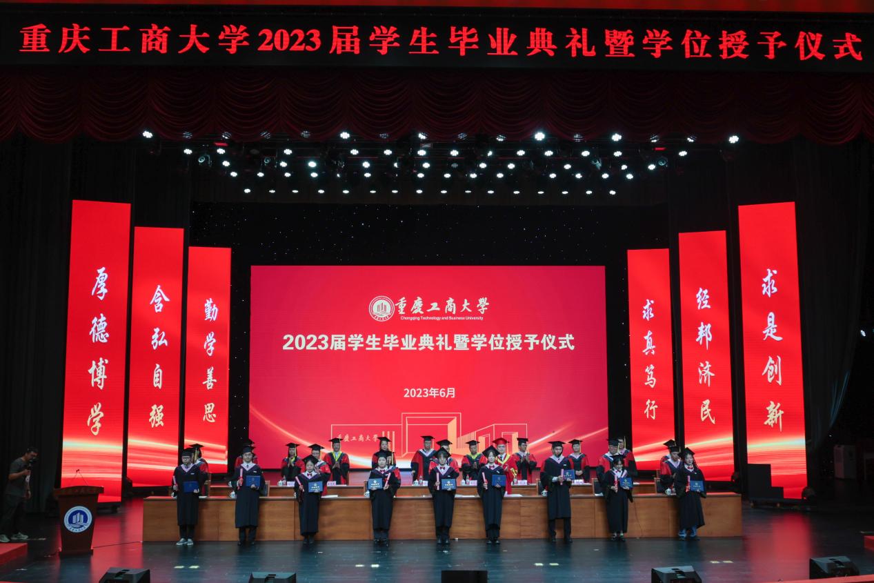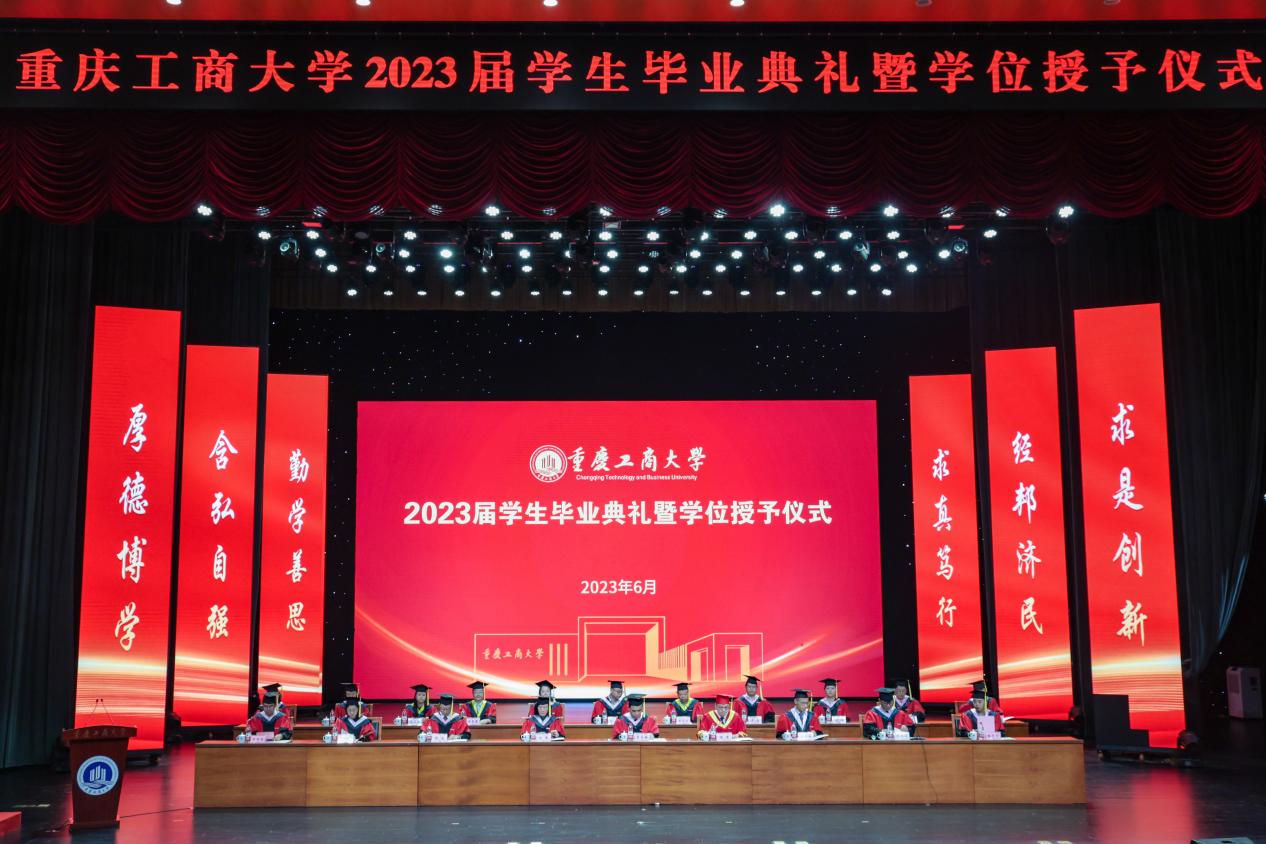 盛夏光年,骊歌悠远。2023届学生毕业典礼暨学位授予仪式于6月21日上午在JINNIAN金年会剧场隆重举行。本次毕业典礼采取“线上+线下”相结合的形式,现场典礼与网络直播同时进行。今年,共有6079名本科生、1161名研究生顺利获得了学士、硕士和博士学位,画上了在重工商大学业生涯的圆满句号。今天之后,他们将怀揣梦想,奔赴远方,开启人生的新征程。