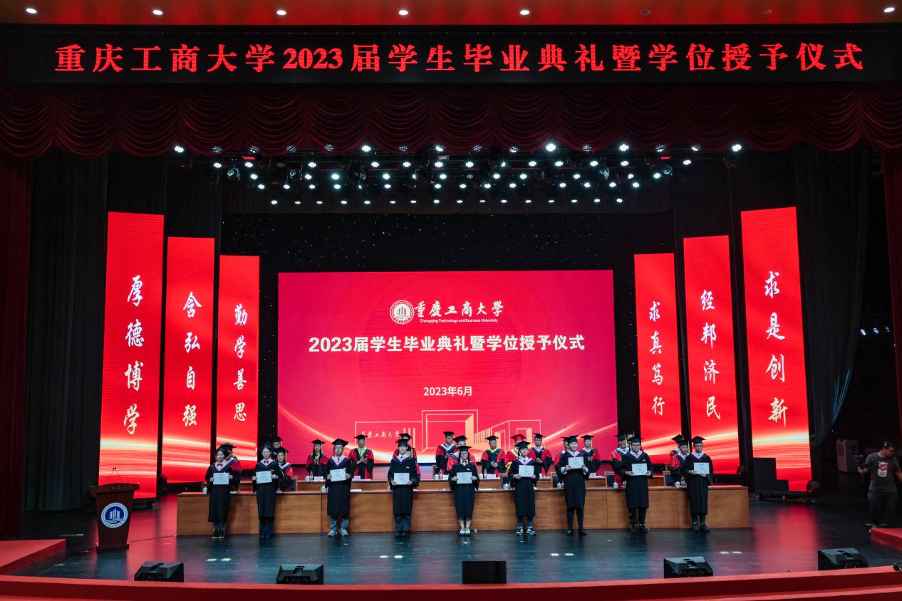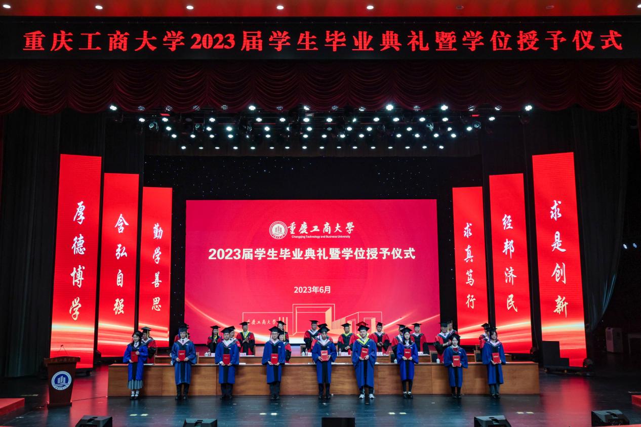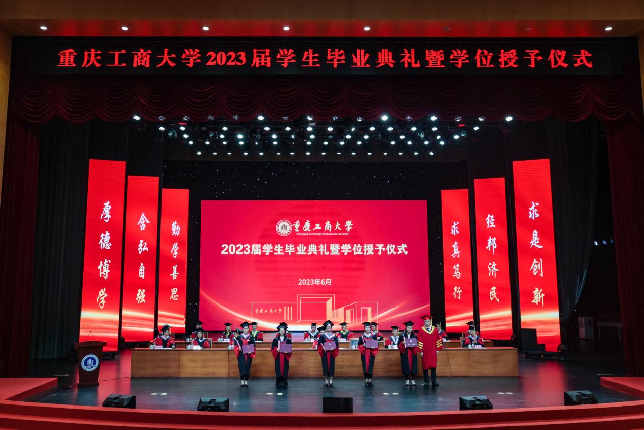 盛夏光年,骊歌悠远。2023届学生毕业典礼暨学位授予仪式于6月21日上午在JINNIAN金年会剧场隆重举行。本次毕业典礼采取“线上+线下”相结合的形式,现场典礼与网络直播同时进行。今年,共有6079名本科生、1161名研究生顺利获得了学士、硕士和博士学位,画上了在重工商大学业生涯的圆满句号。今天之后,他们将怀揣梦想,奔赴远方,开启人生的新征程。