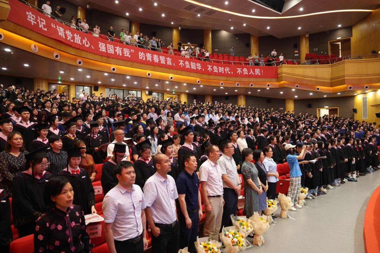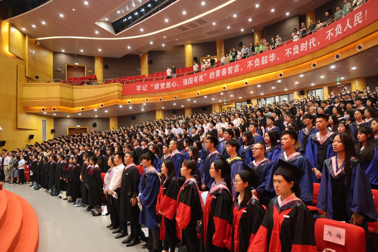 随后,师生们齐唱校歌《大路漫漫其修远长》。随着《放心去飞》悠扬的旋律响起,学校领导和与会教师全体起立,陪伴即将承载着母校的殷切希望,踏上全新征程的2023届毕业生们离开会场。至此,2023届学生毕业典礼暨学位授予仪式落下帷幕。