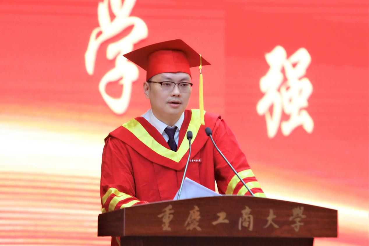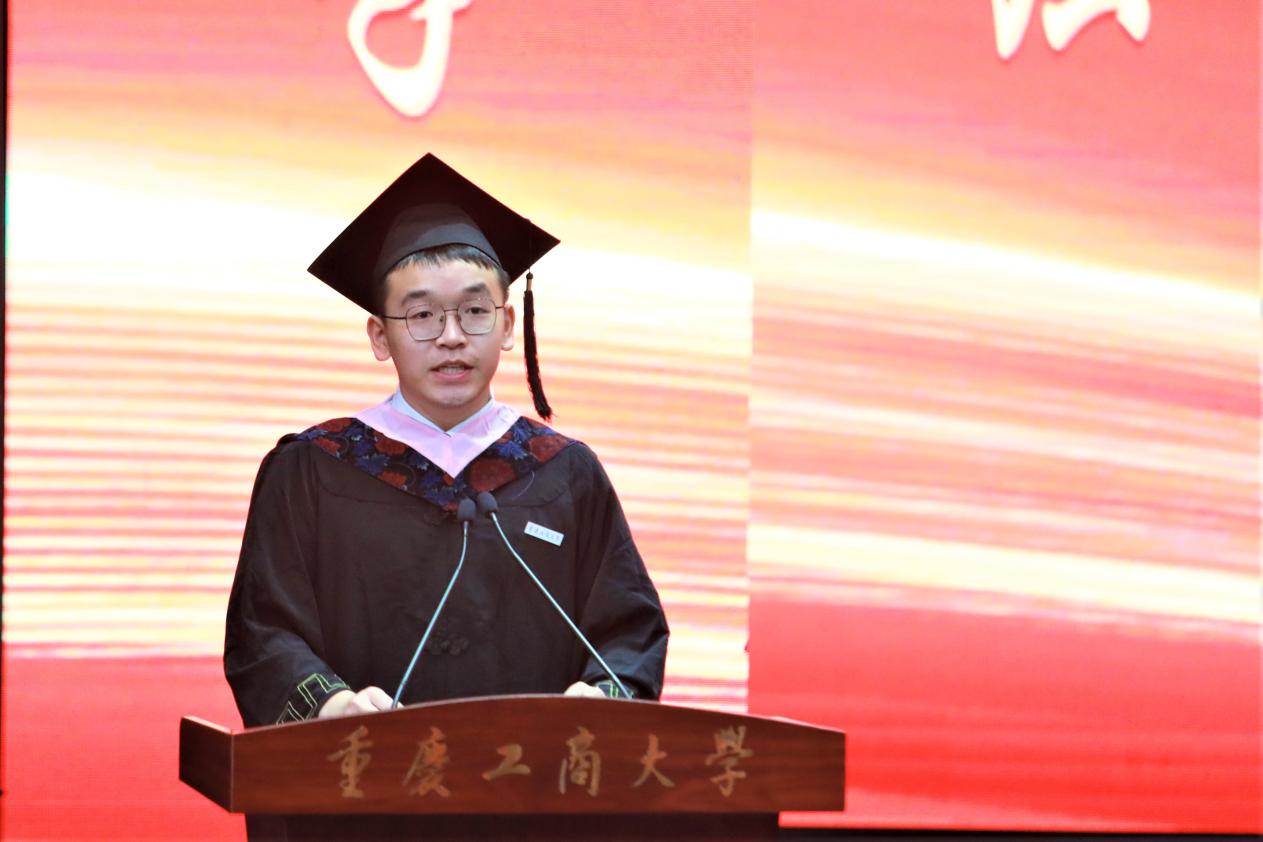 时代造就青年,盛世成就青年。2019级本科生钱世淋作为学生代表发表了毕业感言。他回顾了在JINNIAN金年会四年的成长与收获,向辛勤培育他的母校、领导和老师表达了最真挚的祝福与感谢。他谈到,毕业生们即将拾起行囊整装启程迈向人生新阶段,以校友的身份在世界各地、祖国南北不同领域里奋斗。他表示,全体毕业生将牢记“厚德博学,求是创新”的校训,永葆“含弘自强,经邦济民”的重工商大精神,在各自的青春赛道跑出无愧于母校、无愧于祖国、无愧于人民、无愧于这个时代的好成绩,在以中国式现代化全面推进中华民族伟大复兴的新征程上贡献重工商大人的力量。