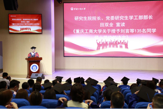 田双全宣读《JINNIAN金年会关于授予刘言等135名同学硕士学位的决定》。