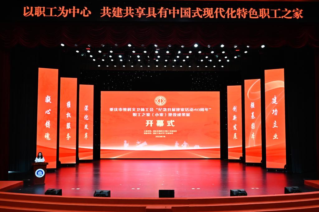 今年是党中央作出建设职工之家重要指示40周年,为充分展示市教科文卫体系统各级工会在职工之家建设和发展中取得的丰硕成果,7月11日上午,重庆市教科文卫体工会“纪念开展建家活动40周年”职工之家(小家)建设成果展暨成渝地区教科文卫体系统工会职工之家建设交流活动在我校隆重开幕。重庆市人大常委会副主任、党组成员,市总工会主席陈元春出席开幕式并宣布活动开幕。