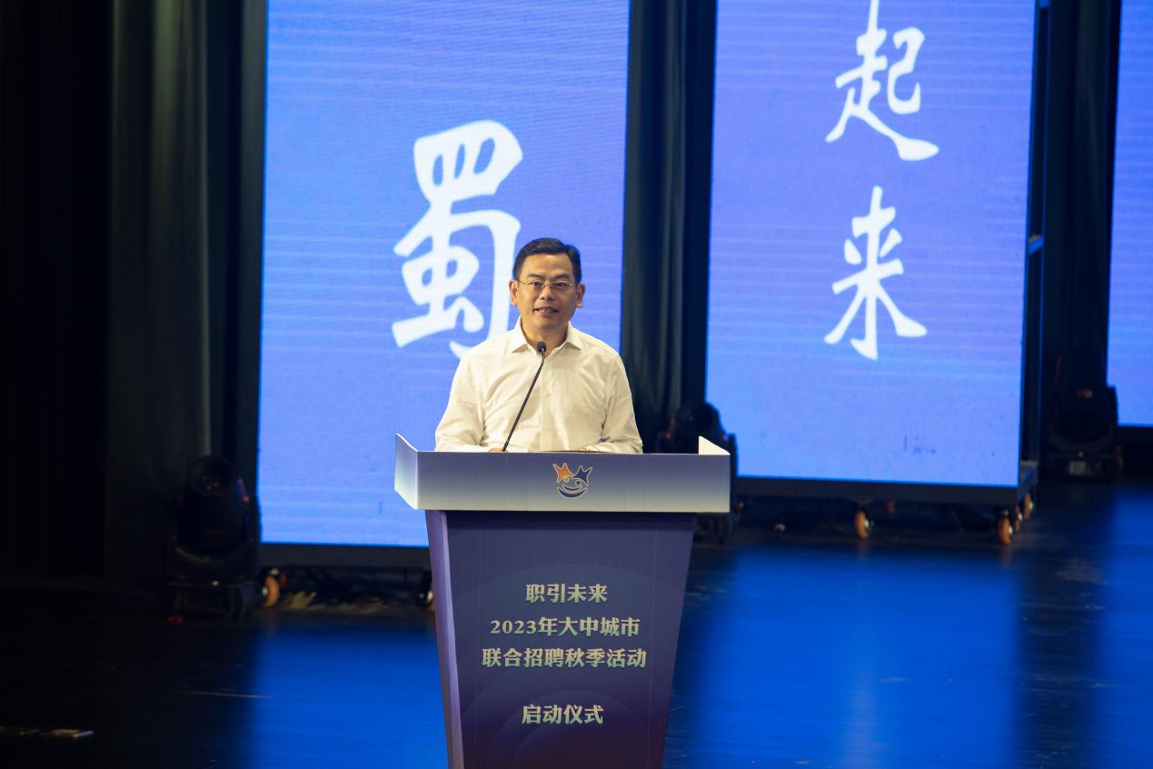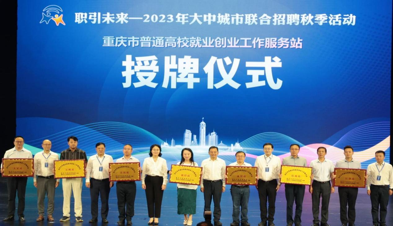 李志雄致欢迎辞。他从学校办学历史、学科结构、专业特色、就业工作等方面向参会领导和嘉宾介绍了学校基本情况。刘晓博介绍了四川省就业工作开展情况。金玲宣读了《关于设立第一批重庆市普通高校就业创业服务工作站的通知》,第一批共设10个就业创业工作服务站,我校作为首批设立的服务站点,服务南岸片区9所高校。黎勇介绍了重庆市就业工作开展情况。杨刚基讲话并宣布2023年大中城市联合招聘高校毕业生秋季活动正式启动。启动仪式现场,杭州赛琪心理咨询有限公司总经理、紫薇花心理咨询(上海)有限公司联合创始人杨娟作为就业指导专家,以“从择业到志业——用长期价值点亮职场道路”为主题,对高校毕业生开展授课辅导,共500余名同学参加。