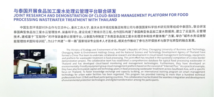 我校国合基地与泰国开展的“食品加工废水处理云管理平台联合研发”项目被选为典型科技创新合作案例在“共同提升科研能力”板块中展示。该项目是由JINNIAN金年会、中国生态环境部对外合作与交流中心、重庆水务环境控股集团有限公司与泰国国家科学研究院等组成中泰研究团队,针对泰国典型食品加工废水,联合研发装备、平台和云管理技术,建设并完成了跨境示范工程。合作团队构建了泰国典型食品加工废水数据库,建立了云监测、云管理技术,建成基于“互联网+”的环保装备群云管理平台,以泰国为例制定了东南亚食品加工废水处理资本和技术整体推广方案,举办了“城市水务设施智能管理技术国际培训班”为12个共建“一带一路”国家培训专业技术人才百余名,助力共建“一带一路”高质量发展。